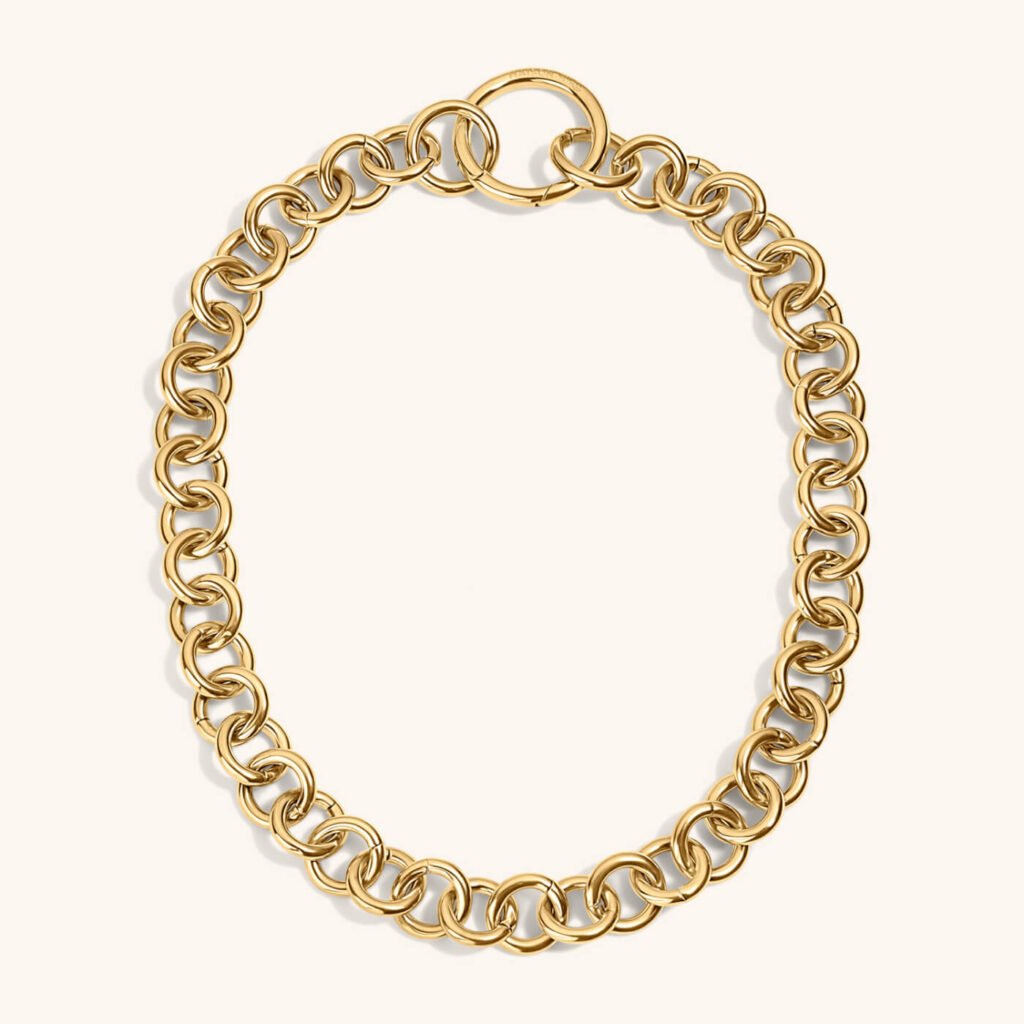The Bubble Necklace is designed to rest on your collar bone as a low choker and is fastened by our signature O-ring closure for a seamlessly elegant look.