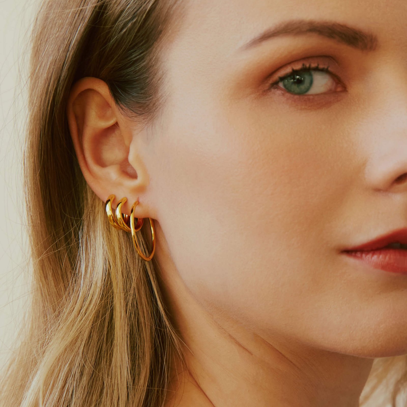 Our Classic Hoops, now available in medical grade titanium for 24/7 waterproof, sweatproof, lifeproof wear, are 1″ in diameter. Super lightweight for comfort, these hoops are made to mix and match. Â
