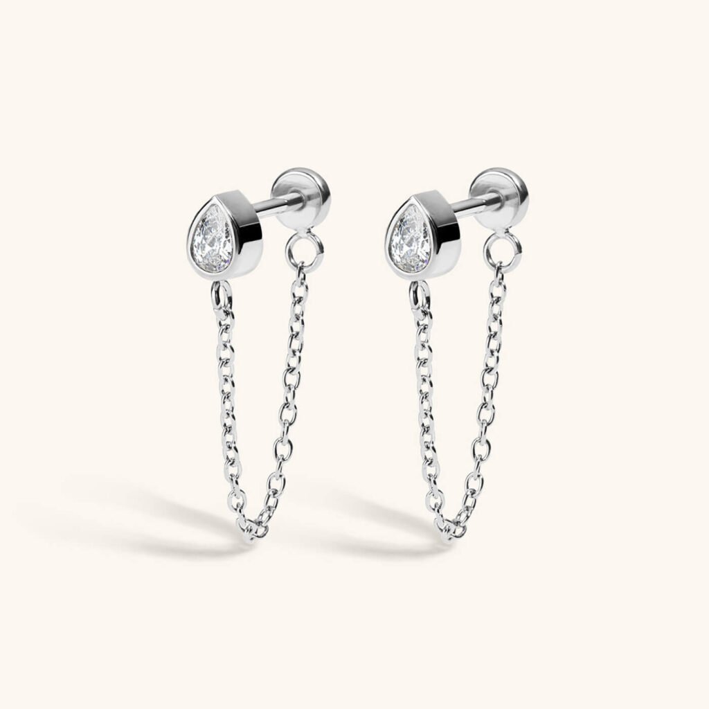 Our tiny dewdrop gold crystal earrings with a seductively delicate little chain.