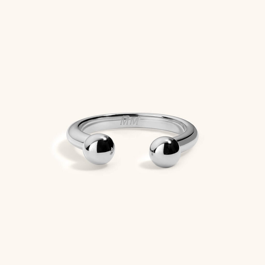 A bold building block for your ring stack, featuring a pair of spheres floating on your fingers. Our Floating Sphere Stacking Rings are designed to be worn solo or stacked, so you can create your own signature look. Floating Sphere Stacking Rings are all adjustable, so you can switch them up and wear them on different fingers. Designed to be genderless, these stacking rings are for her, for him, for them, for everyone.