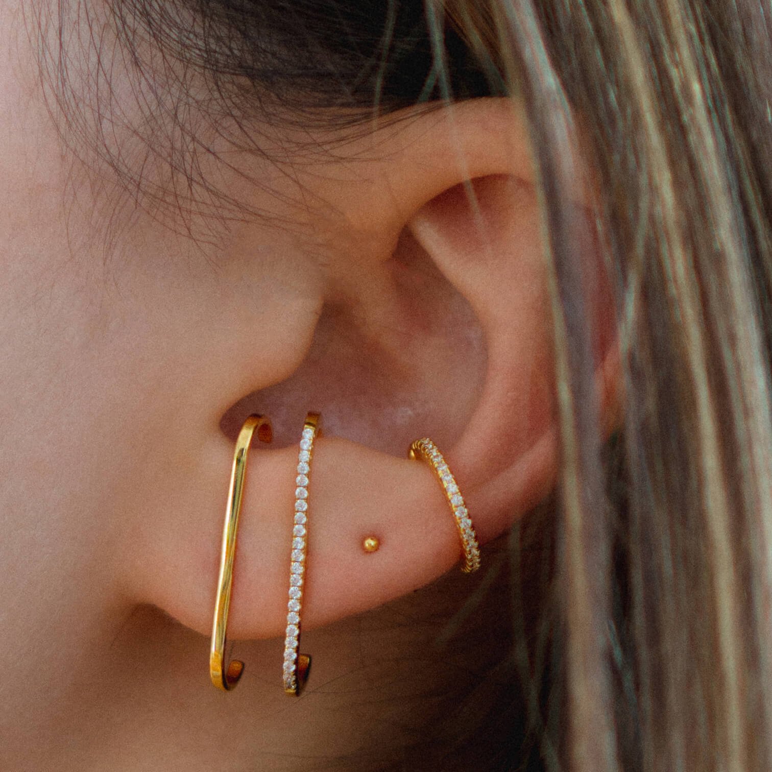 Our signature ball back stud earrings are designed for both lobe and cartilage piercings, and they’re designed to wear 24/7 while you’re showering and sleeping. Our ball back studs are also poke-free – so they’re great to wear with Airpods and headphones.