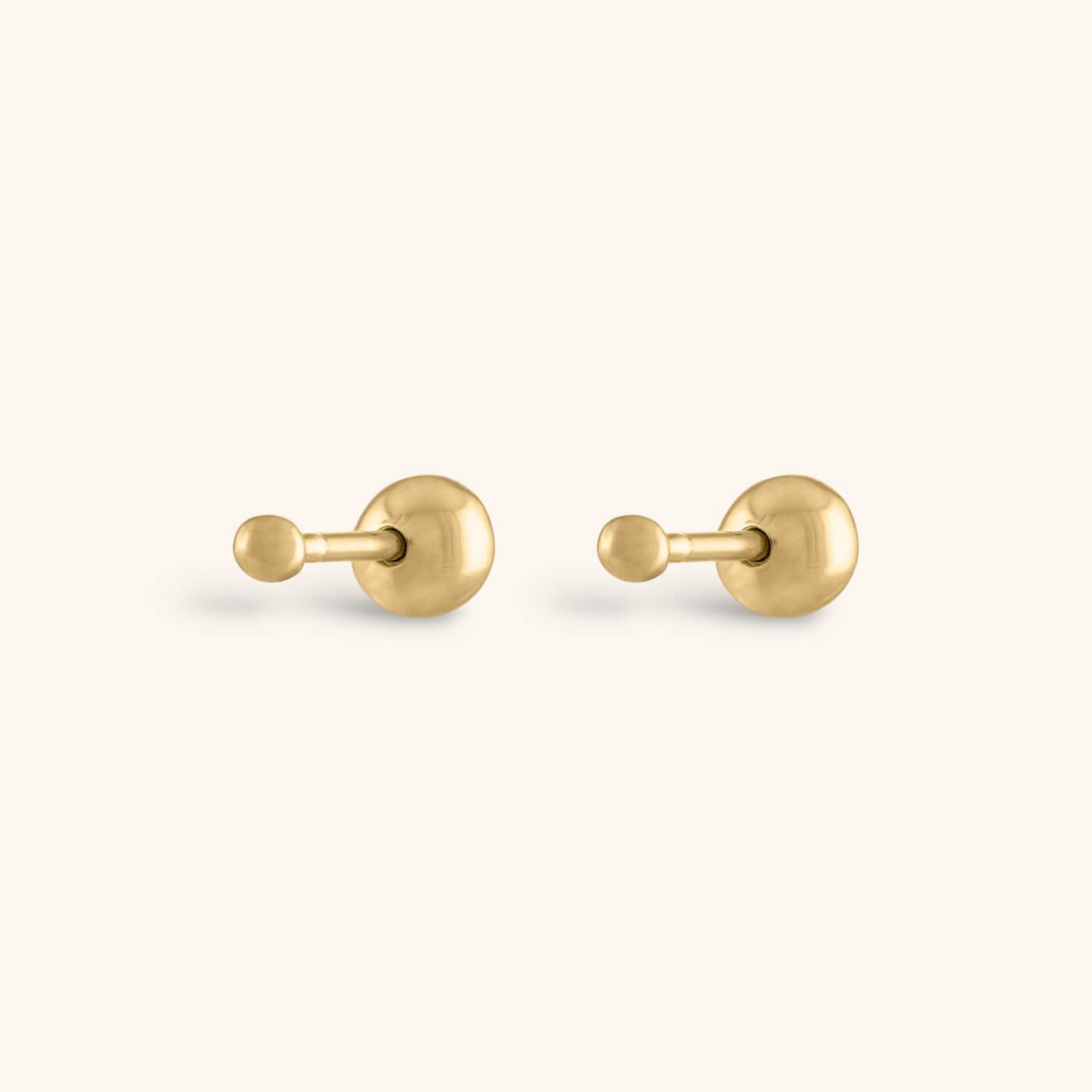 To wear our ball back earrings, you’ll screw on the solid gold ball back onto the earring post. The screw on design is designed to be safe and secure (great for kids!) and it also won’t squeeze your ear – so they’re extra comfortable and perfect for wearing 24/7.